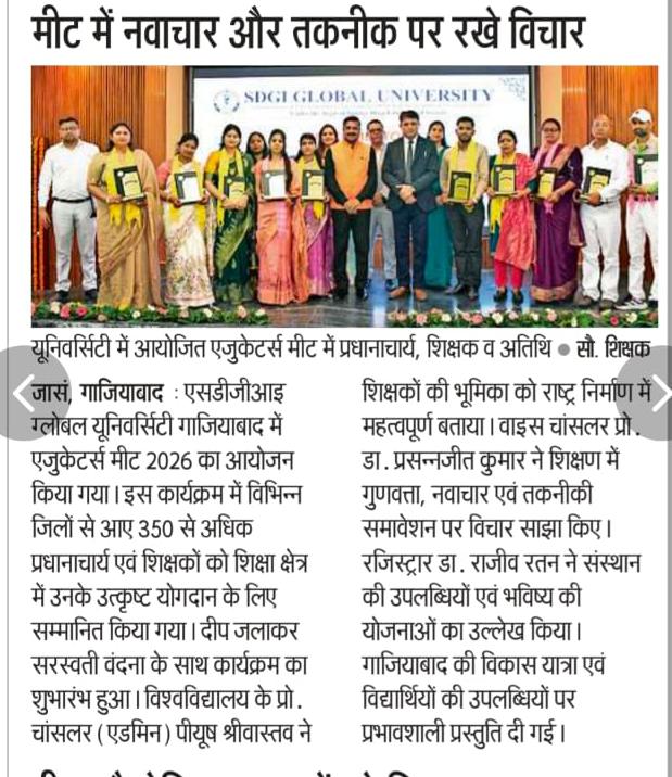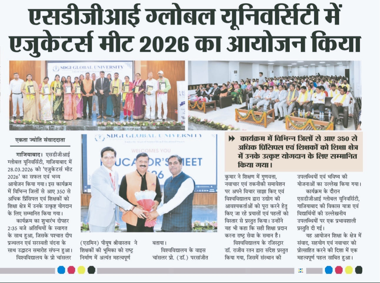 It is with great pleasure that we extend our warm invitation to you for the Educator’s Meet at SDGI Global University, Ghaziabad. We are thrilled to celebrate and honor outstanding educators who have demonstrated exceptional dedication and excellence in their profession.